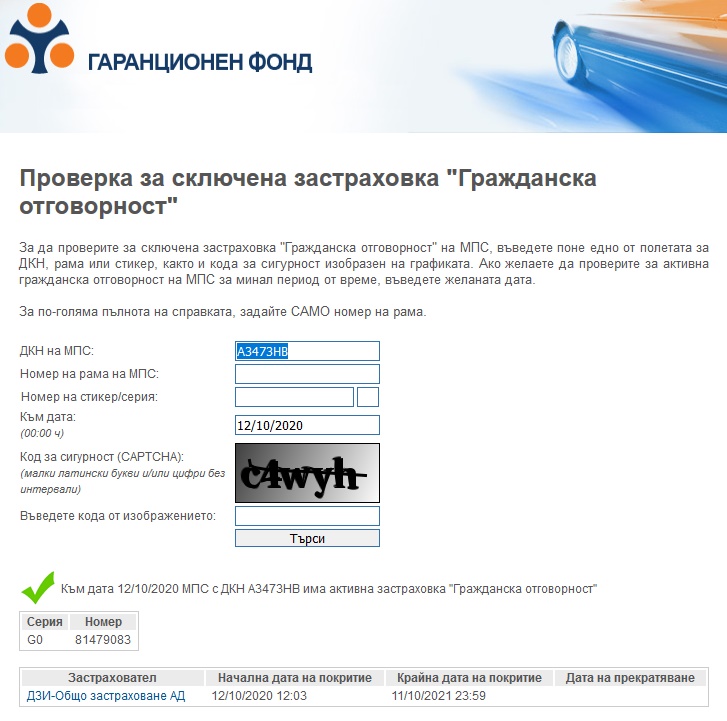 Видно от справките, които извършихме, МПС-то е било без гражданска отговорност (справка от Гаранционен фонд: http://eisoukr.guaranteefund.org/ ) и без винетка (справка от БГ ТОЛ: https://web.bgtoll.bg/TollProduct) до 12.00 ч. на 12.10.2020 /понеделник/. Към днешна дата автомобилът на селския черноморски кмет на ГЕРБ Костадин Диков продължава да бъде и без валиден технически преглед. Това показва бърза проверка в сайта на ИА "Автомобилна администрация (https://rta.government.bg/images/Image/check-inspection/index.html).