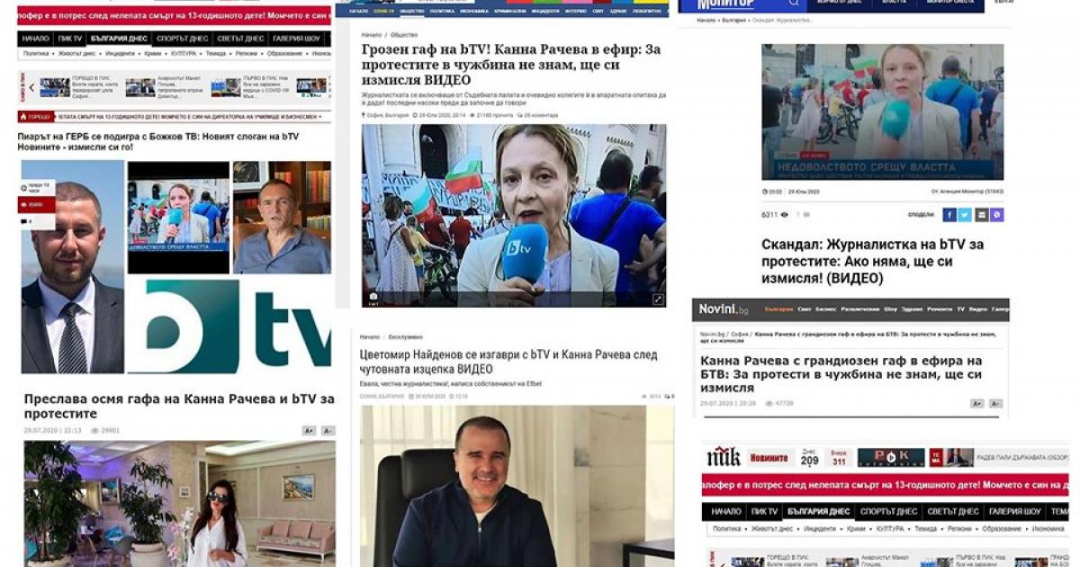 Обективното отразяване на протестите не е нито по модела на работа на платените проравителствени "мисирки" и жълто-кафявите им парцали, нито по възможностите им. След като екоминистъра с прякор Ревизоро изрече в ефир по адрес на bTV - "Аман от тази телевизия" в репортаж за отровната питейна вода в над 50 селеща на България, "пернатите" безпочвено нападнахаа и журналистката Канна Рачева.