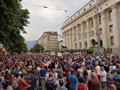 Хиляди недоволни от номинацията на Иван Гешев за главен прокурор протестират срещу кандидатурата му пред Съдебната палата в столицата на България
