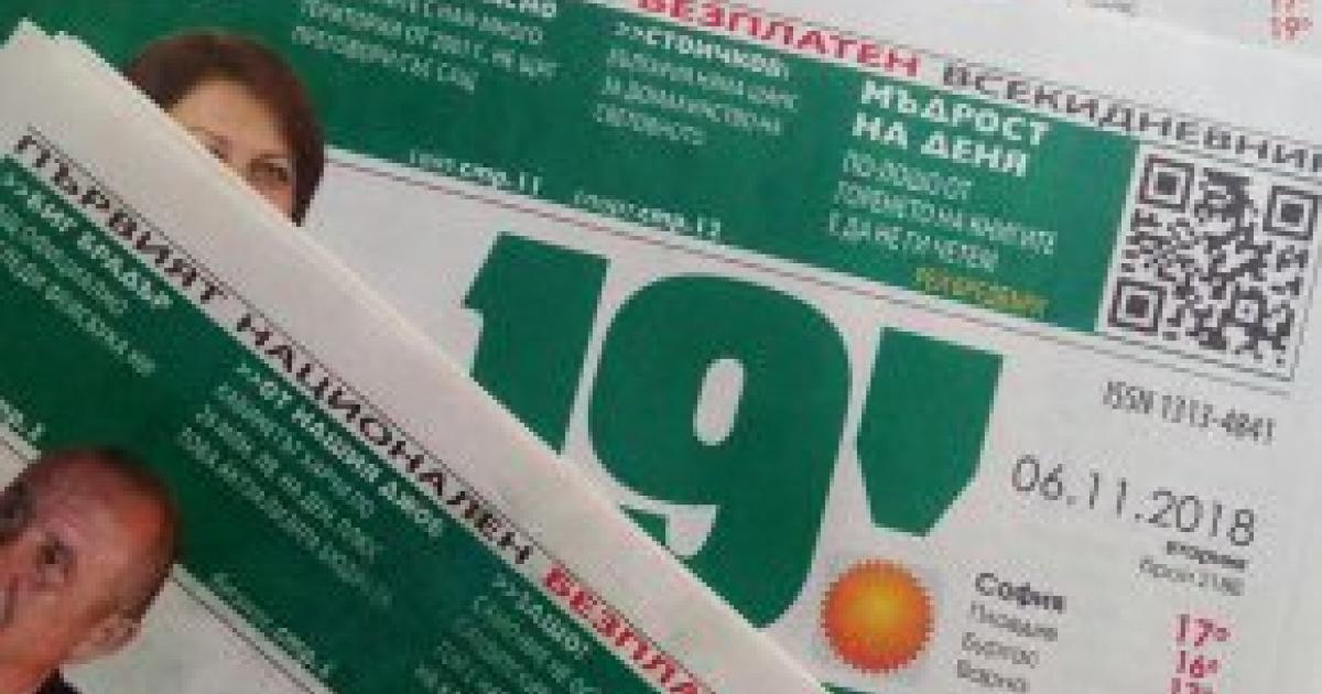 На знаменателната дата 7 ноември стават точно 2 години, откакто НАП тормози незаконно 19 минути. Чрез крайната мярка – запор на сметки, 5 агенции, през които минават рекламните приходи на безплатния вестник и издателската група с 5 сайта и списание, без уведомление бяха „почнати”. Без изискуеми задължения към хазната. Въпреки факта, че месеци наред една от агенциите предостави десетки килограми документи като доказателство за публикувана реклама във вестника, понеже данъчните се съмняваха, че можело да бъде фиктивна. Ала не е: има си договори, заявки, публикации, фактури, сертификати за всяко нещо. От самото начало беше ясно – това е терор. А се доказа с твърдението в доклада по единствената приключена, но обжалвана ревизия, в който НАП настоява: „трябвало е да бъде прекратено издаването на вестника”. Работещите по ревизията десетки хора, чието 2-годишно наливане от пусто в празно и съчинителство на безсмислени доводи и числа струва стотици хиляди лева на данъкоплатците, наричат и помежду си и в контактите с ревизираните фирмите, които ревизират: „вестника”.