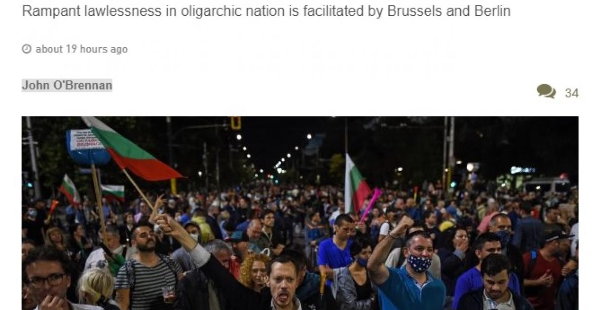 Ендемичната корупция и организираната престъпност разяждат България 30 години след края на комунистическото управление. Тя остава най-бедният член на Европейския съюз с БВП на глава от населението в размер от 53% от средния за ЕС въпреки големите субсидии, които Брюксел отпусна след присъединяването към блока през 2007 г. „Трансперънси интернешънъл” класира България на 74-то място в света по корупция и на последно сред 27-те държави от ЕС.