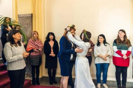 „Традиционно се вярва, че домът, в който влязат лазарки, ще е честит през цялата година и затова ви благодарим за посещението и за хубавото настроение, което внесохте в нашия дом“, каза проф. Нейкова.