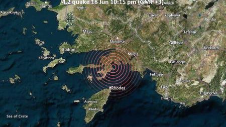 Епицентърът на труса е бил на 10,43 километра от брега в района на морския курорт Мармарис в югозападната провинция Мугла в Турция, на дълбочина 67,91 километра.