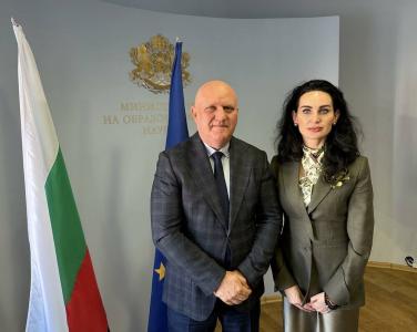 В срещата участваха също заместник-министърът на образованието и науката акад. Николай Витанов, директорът на дирекцията "Международно сътрудничество" в МОН Веселина Ганева, началникът на отдела "Стратегическо планиране и политики за развитие" в дирекцията "Висше образование" Яна Йотова и държавният експерт в дирекцията "Приобщаващо образование" Анелия Йотова.