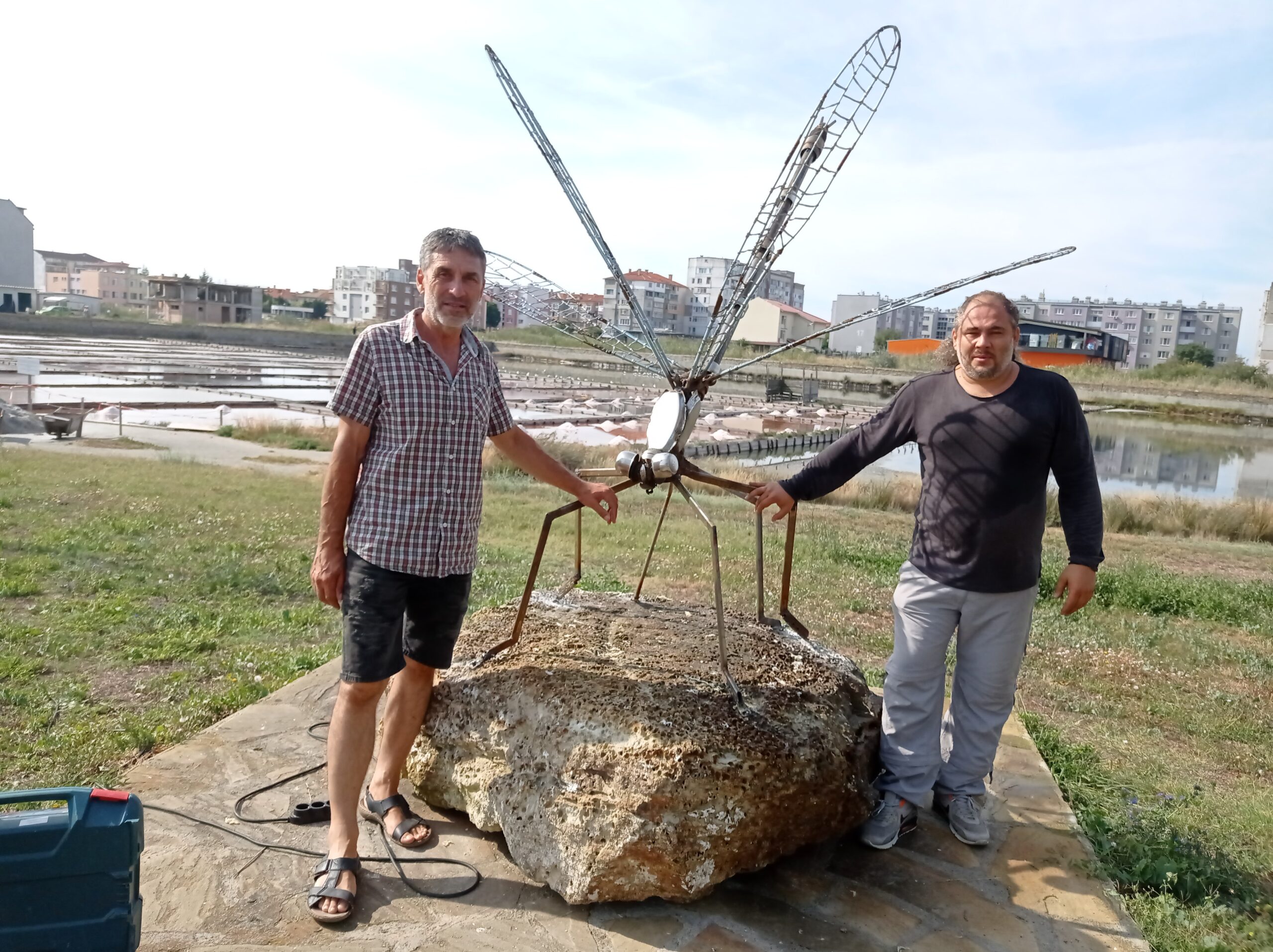 В пространството до Музея на солта и Посетителския център „Поморийско езеро“ вече е поставена скулптурна композиция на грациозното водно конче, наречено тъмно смарагдово водно шило.