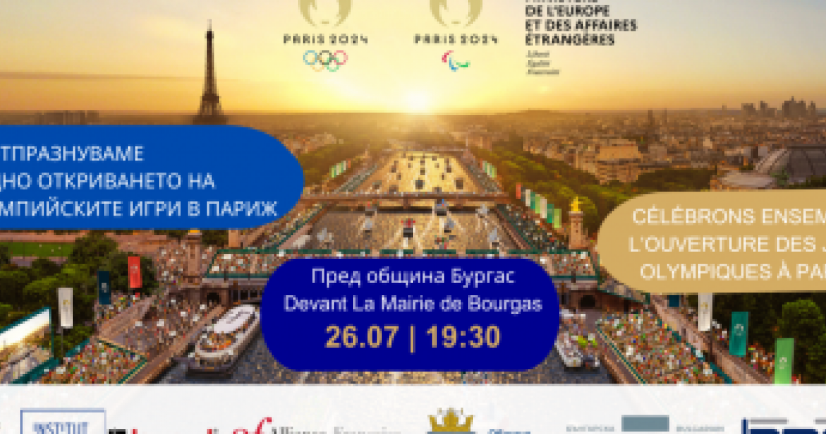 Заповядайте на спортен празник по случай откриването на Олимпийските игри в Париж! Събитието ще се проведе на 26 юли 2024 година, от 19:30 часа, на площада пред Общината в град Бургас.