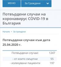 Към днешна дата информацията ни за "набраната" бройка заразени напълно се повтърждава от числата и намерението на министър-председателя Бойко Борисов да разхлаби мерките и евентуално да отмени извънредното положение в България преди датата 13 май 2020 г.