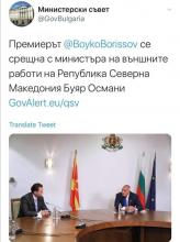 Това заяви министър-председателят Бойко Борисов по време на срещата му с министъра на външните работи на Република Северна Македония Буяр Османи.