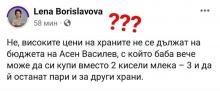 Бюджетът на Асен Василев бил толкова добър, че бабата на Лена Бориславова вече можела да си купи не две, е цели три кисели млека и да й останат пари за друго. Сигурно за презервтиви и лубрикант. А може би парапет? За да ги подари на внучка си.