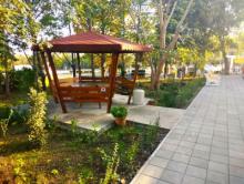 На снимката виждате благоустроено пространство в комплекс „Зорница“, около бл. 42. Всички дейности по проекта са поискани от жителите на сградата и съгласувани няколко пъти с тях. Там са ремонтирани тротоарите. Поставени са нови пейки и беседка. Засадена е допълнителна зеленина, при запазване на съществуващата здрава растителност.